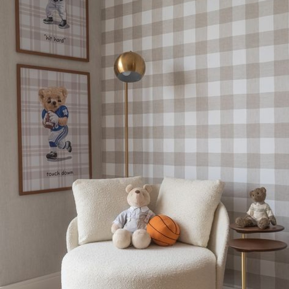 - особенность - классическая клетка в пастельных оттенках. Возможность сочетать рисунок "клетка" и сделать детскую в английском стиле.