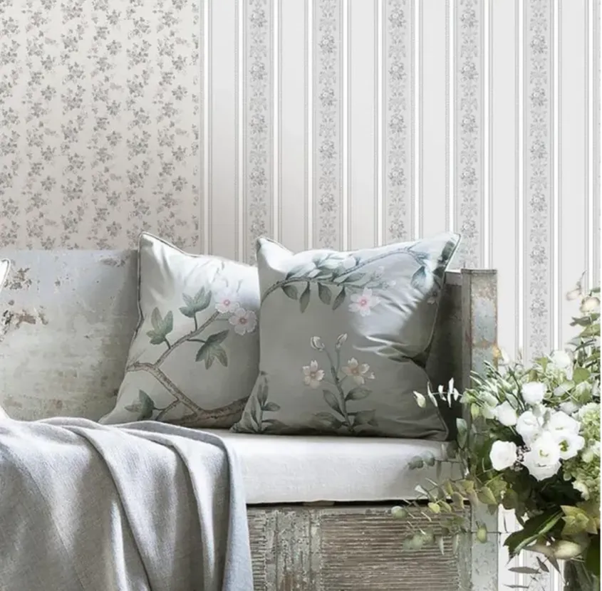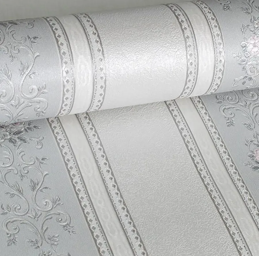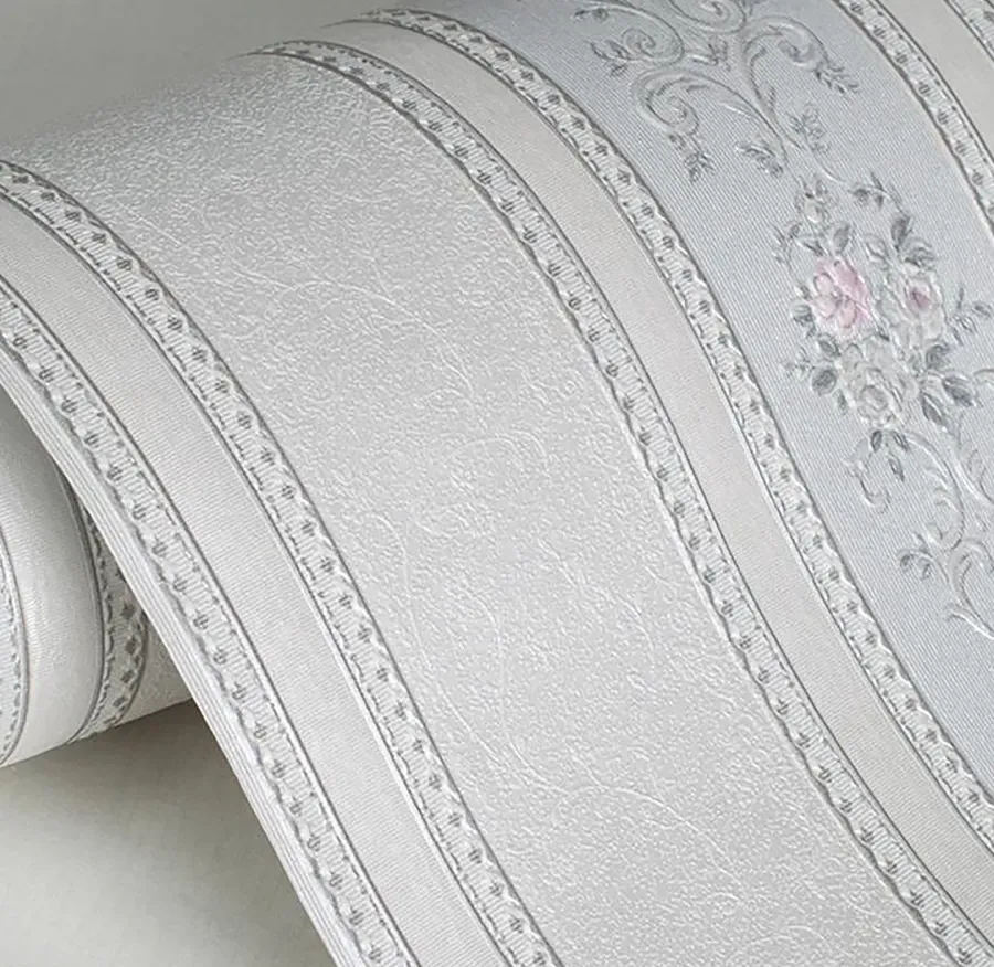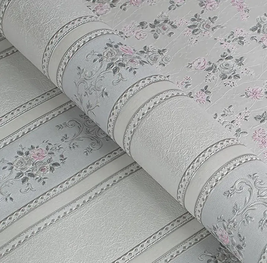 Экологичные бумажные обои с классическим цветочным орнаментом и полоской, дуплекс...