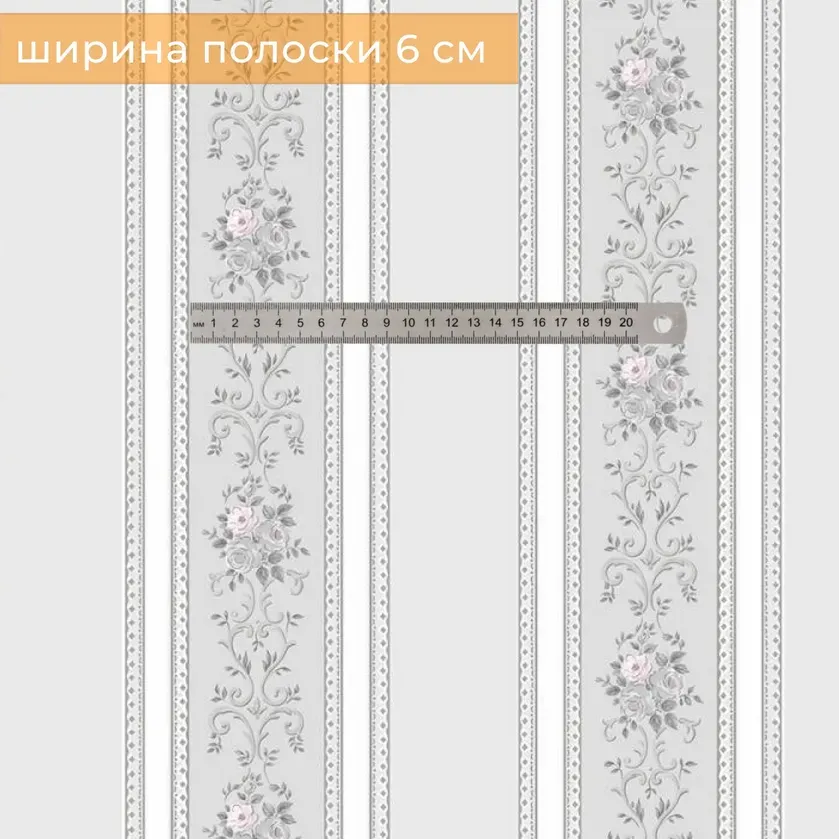 Обои бумажные Д877-06 Ситчик, полоска, флористика 0,53х10,05 м