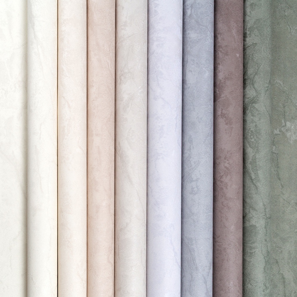 Дизайн обоев напоминает жатую ткань крэш, где застывшие тисненые складки смотрятся как многослойная композиция. Бархатистые тени ложатся на фактуру с имитацией натурального шелка или велюра, добавляя глубину и благородную небрежность. Игра света и тени на рельефных линиях уютно сглаживает контуры стен, а плотная матовая фактура уютно скрывает мелкие изъяны поверхности. В зависимости от освещения, складки выразительно подчеркивают тактильную структуру натурального текстиля. Глубокое тиснение текстуры напоминает богемный шик скомканного в беспорядке бархата, где каждая будто случайная складка хранит следы прикосновений мастера. Характерная шероховатость и неповторимый рисунок жатой ткани вызывает желание прикоснувшись, ощутить теплоту и тактильность фактуры. Фактура драпированной ткани с мягкими складками создаёт динамичные переливы света и тени, наполняя интерьер движением и объёмом. Плавные естественные изгибы ткани бликуют, отражая свет при разном освещении – поэтому утром и вечером фактура «играет» по-разному и визуально «оживляет» стену. Изысканные глубокие оттенки коллекции – грозовое небо, кофейная пенка, шалфейный – создают яркие акценты в интерьере. Они имитируют эффект драгоценной ткани и хорошо сочетаются с натуральными материалами в отделке.