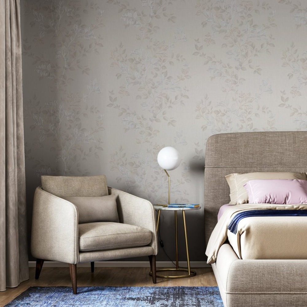 Многоплановая композиция в виде изящных листьев и ветвей, которые слегка колышутся от ветерка, смотрится легко и воздушно. Линии рисунка окутывают мягким романтичным настроением, а сам природный мотив находит свое продолжение в нежном акварельном исполнении. Приятный бонус для покупателя – основной мотив и компаньоны коллекции удобно клеить без подгона. Флизелиновая основа хорошо приклеивается к стене, а рисунок не требует стыковки – это позволяет легко оформить помещение в едином стиле даже начинающему мастеру. Приятная на ощупь фактура натуральной рогожки подчеркивает природный характер коллекции. Матовая поверхность приятно рассеивает свет, а тканевое переплетение волокон дарит интерьеру ощущение домашнего уюта. Контуры рисунка аккуратно выделены штрихами металлизированного блеска – они красиво переливаются при свете. Этот блестящий эффект подчеркивает объем мотива, а сочетание матовой структуры и мерцающего декора искусно оттеняет изысканность оформления. Коллекция представлена в спокойных природных оттенках: глубокий шалфей, бежево-песочный, жемчужно-серый, тёплый кремовый и универсальный белый. Эти тона легко сочетаются между собой и создают атмосферу современного эко-стиля.