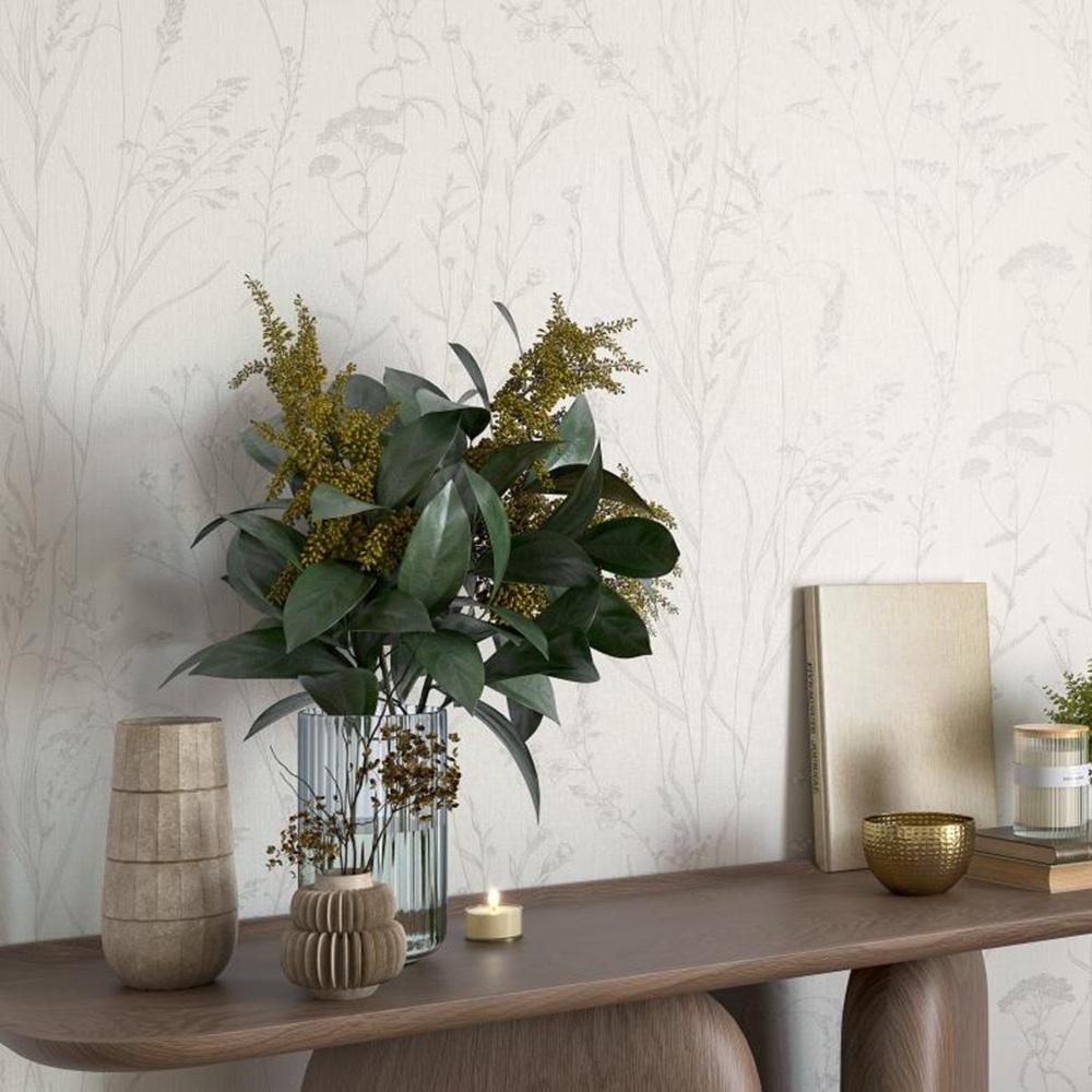 Мотив Travki-muravki хранит лёгкость живой природы: тонкие стебельки, вытягиваясь вверх, формируют изящный ритм и наполняют пространство динамикой. Рисунок органично вплетается в интерьер и создаёт ощущение лёгкости и утончённой гармонии. Деликатно переливающиеся акценты меняются в зависимости от освещения: днём они светятся едва уловимо, а в вечерних огнях становятся ярче и выразительнее, оживляя мотив и подчёркивая его изящество. Благодаря технологии прокрашенные в массе поверхность выглядит цельной и аккуратной даже при близком рассмотрении. Цвет сохраняет глубину и насыщенность спустя продолжительное время, а швы остаются незаметными, даря ощущение монолитной стены. Компаньон с матовой фактурой рогожки мягко рассеивает свет, создавая ощущение тактильного уюта и тепла. Подгон «0» обеспечивает ровное и бесшовное покрытие, а характерный рельеф скрывает мелкие неровности стен. Коллекция раскрывается в мягких природных тонах: сливочный, песочно-бежевый, серебристо-серый, нежный персиковый и светлый шалфей. Тщательно подобранные колористики добавляют интерьеру спокойствия и лёгкости, поддерживая природную эстетику.